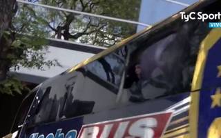 El mediocampista y capitán de Boca Juniors, Pablo Pérez, retornó al estadio Monumental tras ser atendido en el sanatorio Otamendi, donde no recibió el alta médica de la lesión en el ojo izquierdo que sufrió por la agresión al micro que trasladaba al plantel.
