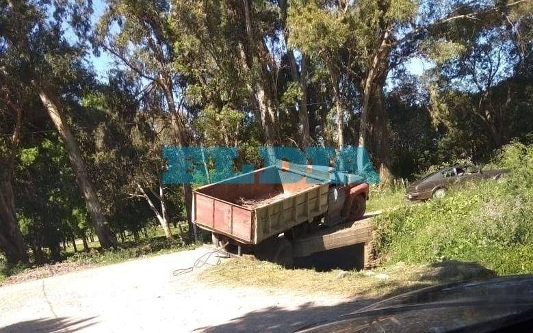 Se trata de un camión que intentó pasar por el puente terminó al borde del vuelco debido a las averías que tiene esta construcción.