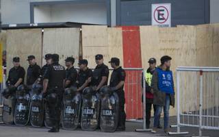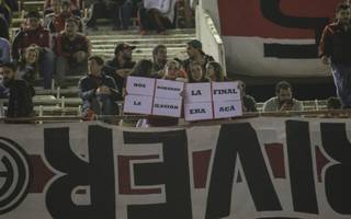 Las banderas contra Boca y la Conmebol demoraron anoche el inicio del partido en el Monumental