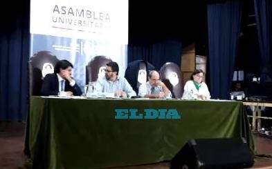 La Asamblea Universitaria se encuentra debatiendo por estas horas en el salón de actos de la Escuela Graduada “Joaquín V. González” (Anexa), en el marco de la elección del rector de la casa de estudios superiores platense para el periodo 2018-2022.