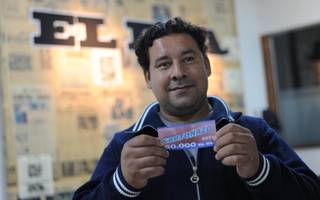 Juan José Florez pasó ayer por la redacción de EL DIA para retirar el cheque por los $50.000 del Cartonazo que ganó la semana pasada. Florez, que es ingeniero, tiene 66 años y vive en el barrio El Mondongo, fue el único que la última semana acertó los quince números y se quedó con el pozo. Fiel lector de EL DIA, contó que lo lee de “punta a punta”.