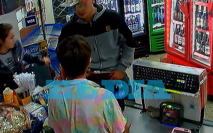 El asalto fue perpetrado alrededor de las 20 y según puede verse a través de las imágenes captadas por las cámaras de seguridad del local uno de los malvivientes le mostró al chico que atendía en la caja el revólver que portaba en la cintura y acto seguido una joven que lo acompañaba procedió a sustraer el dinero en la caja registradora.