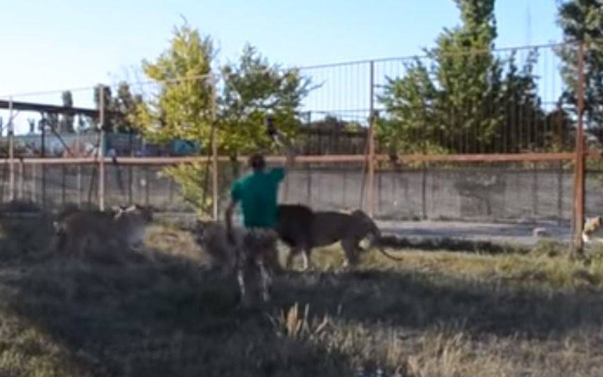 Un visitante de un zoológico de Crimea filmó una insólita situación que se terminó de transformar en viral a través de las redes sociales. Su protagonista es Oleg Zubkov, quien está a cargo del parque y utilizó un método poco frecuente para espantar a los leones.