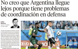 En estas páginas, el alemán Lothar Matthaus, despojado de toda subjetividad y en un análisis frío y con conocimiento, adelantó que el viaje de Argentina en Rusia terminaría ante Francia. Para muchos, fue una visión antipática, aunque tan real que asusta. Y lo dijo con el diario del sábado, no el del lunes, con lo cual toma mucho más valor. Es que la eliminación se veía venir, este equipo de Argentina jamás dio seguridades. La creencia pasó sólo por una cuestión de fe, fuera de toda razón o análisis táctico-futbolístico.