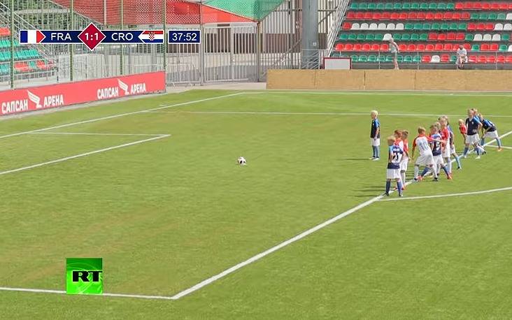 Chicos de una escuela de fútbol de Moscú, recrearon a la perfección las alternativas más salientes de la final de Mundial entre Francia y Croacia, que terminó la victoria de los galos por 4-2.