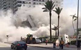 Imágenes transmitidas por televisión mostraron grúas y partes de la construcción diseminadas por el solar en medio de una nube de polvo.
