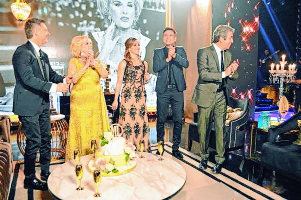 La noche siguió: “Más de 11 mil programas, 60 mil invitados, 28 mil horas de televisión y 300 mil minutos de publicidad”, contó la diva ni bien se sentó en la mesa con Ricardo Darín, Diego Torres, Adrián Suar y Martín Bossi como invitados.