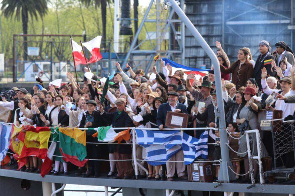En el Canal de Acceso al Puerto, se comenzó a divisar la embarcación adornada con banderas y con más de cien personas que con vestimenta de época y según su origen emularon a sus familiares y rindieron un homenaje en el que la emoción fue parte inevitable en cada uno de esos hombres, mujeres y niños y en el público presente. Entre ellos también, varios rostros de quienes fueron parte real de la inmigración, los que sienten la necesidad de confirmar una vez más el amor por su tierra natal y por la nueva que los cobijó.