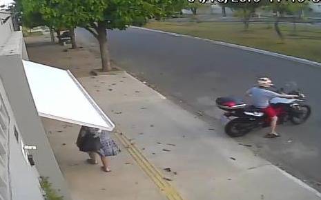 El clip muestra el momento exacto en el que el portón de un garage comienza a cerrase después de que un motociclista sale de su interior. En el video también se puede apreciar cómo el movimiento automático de la estructura termina empujando a una mujer (que justo se encontraba caminando por allí) hacia el interior de una propiedad.