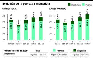 Esos datos dicen que en todo el país el índice de pobreza aumentó a 35,4% al término del primer semestre de este año, contra el 27,3 % registrado en igual período de 2018. Mientras tanto, el nivel de indigencia creció de 4,9 a 7,7%.
