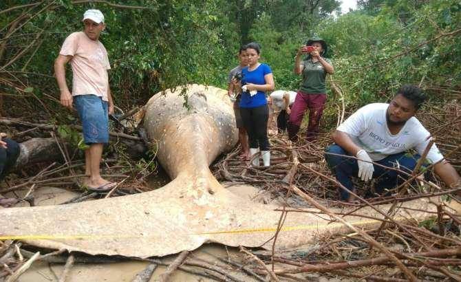 Una ballena fue hallada muerta en pleno Amazonas, en un manglar de la isla brasileña de Marajó, en el estado de Pará, tras supuestamente haber sido arrastrada por la fuerte marea que azotó a esa región. El cetáceo, de 8 metros de longitud, encalló entre árboles de hasta 40 metros de altura, a unos 15 metros de la playa. Perdida, habría muerto por falta de alimentos.
