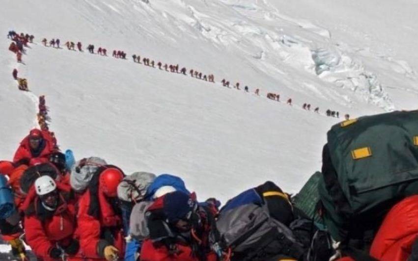Varias de las muertes fueron relacionadas con el embotellamiento, que comenzó a llamar la atención después de que circuló una foto en la que se ve una fila de montañeros esperando para el descenso. El estadounidense Christopher John Kulish, de 61 años, murió en el Campamento IV (a 7.900 m), de un ataque al corazón horas después de haber alcanzado la cima, y las muertes del indio Anjali Kulkarni, de 54 años, y del estadounidense Donald Lynn Cash, de 55, fueron atribuidas al agotamiento por las horas de espera que provocan los atascos. Kulkarni murió por encima de los 8.000 metros, en lo que se conoce como la “zona de la muerte”, ya que descendía después de haber llegado a la cima, mientras que Cash murió en el Paso de Hillary, a 8.790 metros, víctima de agotamiento. Escalar el Everest era un sueño que pocos realizaban antes de que Nepal abriera su ladera a la escalada comercial. Este año se emitió un número récord de permisos, lo que probablemente contribuyó al mayor número de muertes.