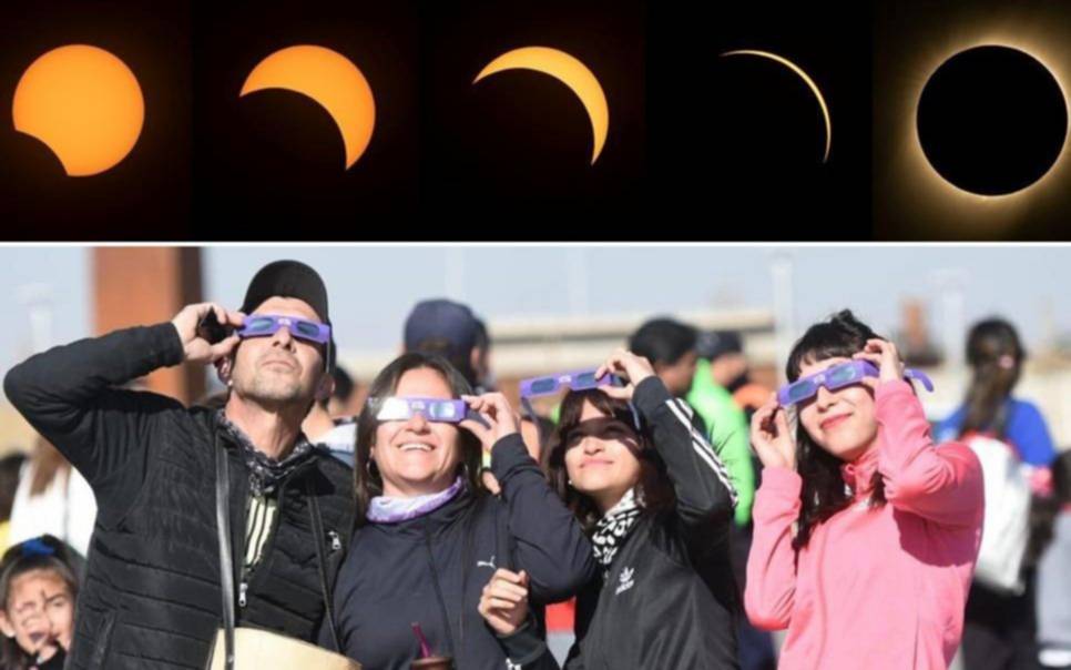 Miles de personas disfrutaron ayer del eclipse total de Sol que tuvo como eje principal a seis provincias situadas en la región central del país, en donde a partir de las 17.40 y por un lapso de entre 40 segundos y 4 minutos, según el punto de observación, se hizo de noche en pleno día, en un fenómeno astronómico que congregó la atención de argentinos y extranjeros. En nuestra ciudad también se vivió de forma especial, e incluso personas no videntes tuvieron la oportunidad de percibirlo (ver página 15).