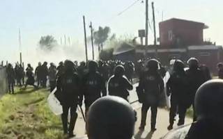 Efectivos de Infantería de la provincia de Buenos Aires, cerca de las 9:30, ya controlaban los acceso al predio de 200 hectáreas ubicado en Guernica, Partido de Presidente Perón, que fue desalojado hoy por orden judicial, mientras cinco camionetas de la policía y un camión hidrante recorren el lugar. Según confirmaron hay 39 detenidos y varios heridos, entre efectivos y usurpadores, producto de los serios enfrentamientos que tuvieron lugar durante el operativo sorpresa.