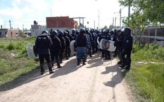 En una recorrida que hizo EL DIA por la zona pudo comprobar que todos los accesos al predio están vallados por al menos 20 policías, todos ellos armados y con escudos. Incluso se pudo observar que vecinos que viven linderos a esas tierras no pueden ingresar a sus hogares por el cordón policial. Aunque también el grueso de los agentes -se estima que fueron un total de 4.000 los que participaron- permanece dentro de la toma. Se trata de un gran despliegue que además cuenta con la presencia de al menos dos ambulancias del SAME en cada uno de los accesos.