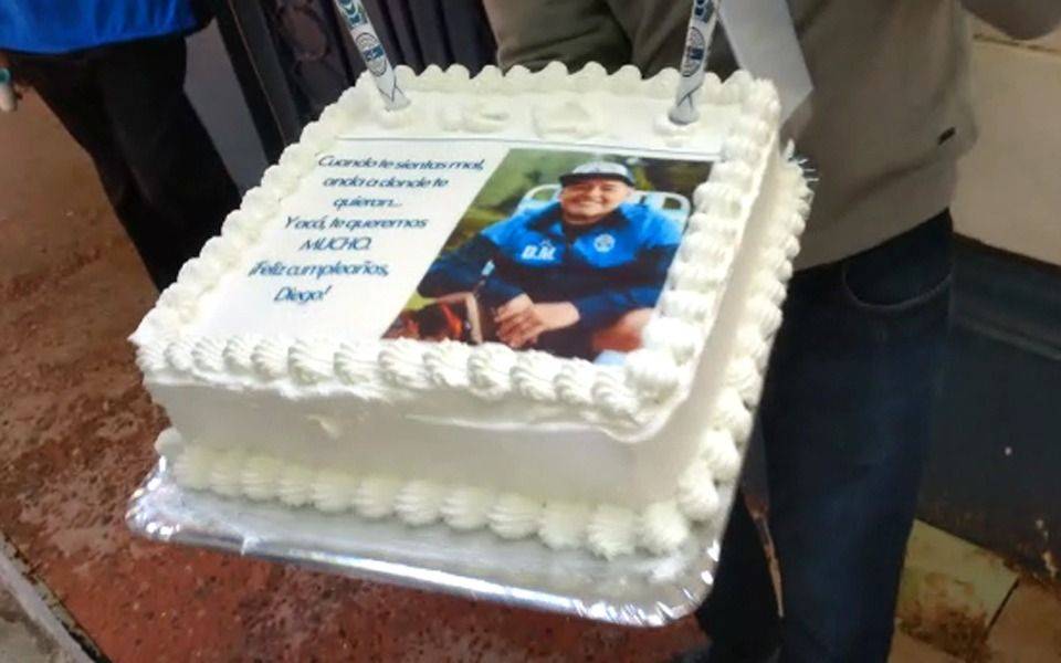 Una de las tantas sorpresas que recibió Diego Maradona esta tarde en el Bosque, fue de parte del plantel: una torta con su imagen y una frase que lo caracteriza porque solía repetírsela su madre.