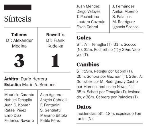 Talleres, con un segundo tiempo impecable, venció anoche por 3-1 a Newell´s, en el inicio del Grupo 4 de la Copa de la Liga. El equipo cordobés ganó sin objeciones. Solo necesitó un tiempo para alcanzar ese objetivo.