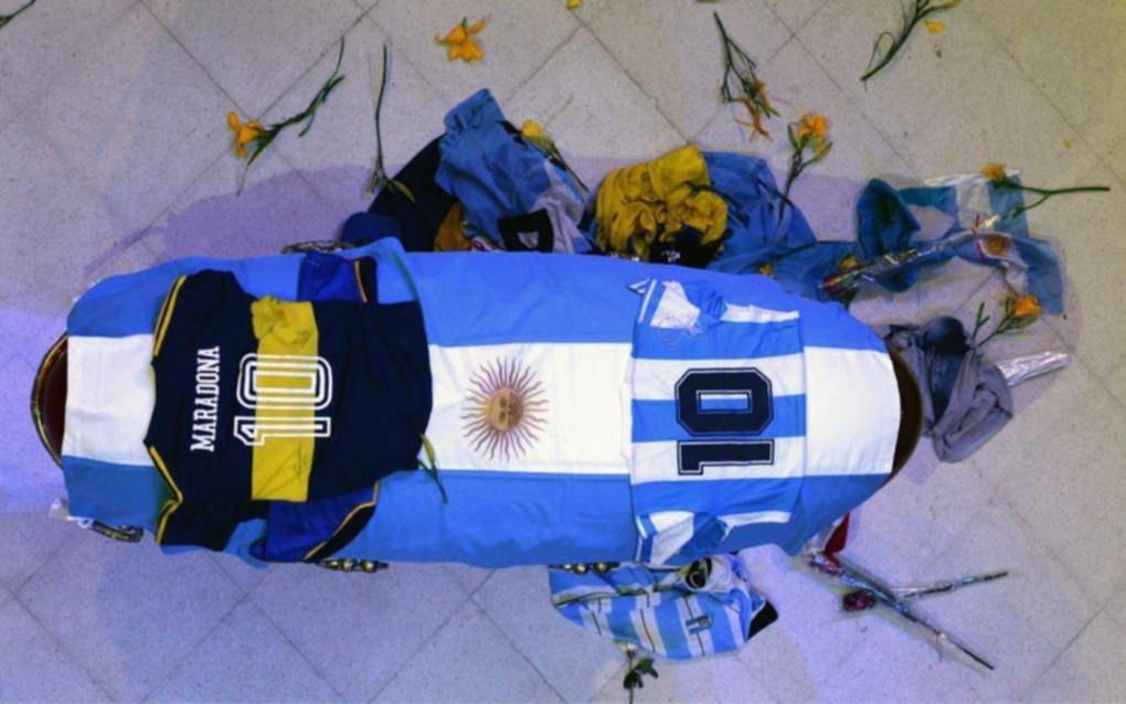 Los preparativos para el funeral comenzaron ayer por la tarde en la sede del Gobierno. El cajón con el cuerpo de Maradona, cubierto con una bandera argentina y una camiseta de Boca, fue colocado en el Salón de los Patriotas Latinoamericanos. Para ello, debieron quitar varios molinetes y una estructura de madera que resguardaba una lenta obra de refacción interna. Los restos del astro llegaron a la 1:08 de esta madrugada a la Casa Rosada, donde aguardaban Claudia Villafañe con Dalma y Giannina para darle la despedida íntima. El cuerpo salió 0.46 de la casa velatoria Tres Arroyos, en el barrio porteño de La Paternal, lugar al que había arribado desde la morgue judicial de San Fernando. El ingreso del público comenzó a realizarse a las 6.17 por Avenida de Mayo y 9 de Julio, entrando a la Casa Rosada por Balcarce 50 y en el inicio se produjeron algunos incidentes entre los fanáticos de Maradona y efectivos policiales, que incluyeron corridas y agresiones con piedras. Se estima que finalizará a las 16.