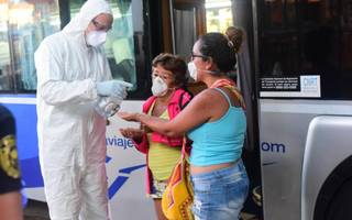 Una escenografía fue de noche. Pasadas las 20 un micro de turismo proveniente de Camboriú, empezó a dejar pasajeros sin control alguno. Una mujer descendió en 31 y 528. Un vecino lo denunció y la Policía detuvo al colectivo en 131 y 46. Entonces cada pasajero fue analizado y llenó el formulario correspondiente.