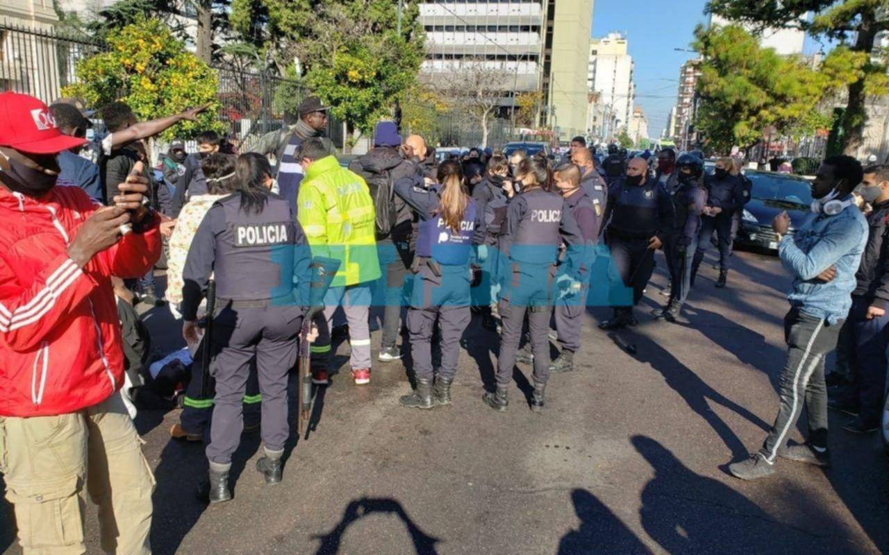 Un grupo de manteros senegaleses protagonizó esta mañana incidentes en las inmediaciones de 6 y 47, en pleno centro de La Plata, en el marco de un enorme despliegue policial. Por los hechos, que suscitaron un momento de tensión, uno de los vendedores fue aprehendido y trasladado a bordo de un patrullero a la comisaría Primera.