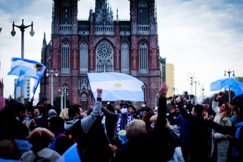 Banderazos y reclamos en distintas ciudades. En La Plata, la movilización fue en Plaza Moreno. El Presidente insiste en la idea