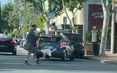 Una vez que cruzaron lo que a simple vista es una avenida transitada, el hombre depositó al animal sobre la vereda, aunque siempre sosteniéndolo con la correa y siguieron caminando juntos. Desopilante.