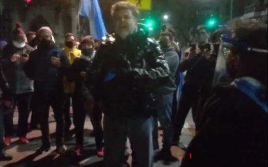 Al ex líder de Cha Cha Chá se lo pudo ver eufórico y sin tapabocas, arengando al resto de los manifestantes, escena que fue captada por diferentes teléfonos celulares. En el video, que se viralizó en redes sociales, se vio al humorista hablándole a una veintena de presentes que lo escuchaban.