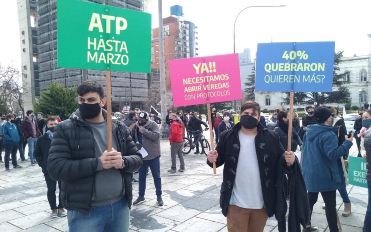 Mientras el grueso se ubicó en Plaza Moreno con carteles solicitando mayor apertura y la continuidad del programa ATP hasta el año próximo, un grupo se reunió con el secretario de Coordinación, Oscar Negrelli, para dialogar sobre la problemática que atraviesa el sector.