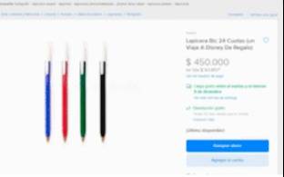 En la descripción agrega de qué tipo de lapiceras se trata, y es que es uno de los más usados en el país para tener en la casa, oficina o en el colegio. “Su forma hexagonal permite que no ruede en la superficie de la mesa además de brindar mayor control y comodidad al escribir”, agrega la publicación que finalmente completa: “Viaje a Disney de regalo”.