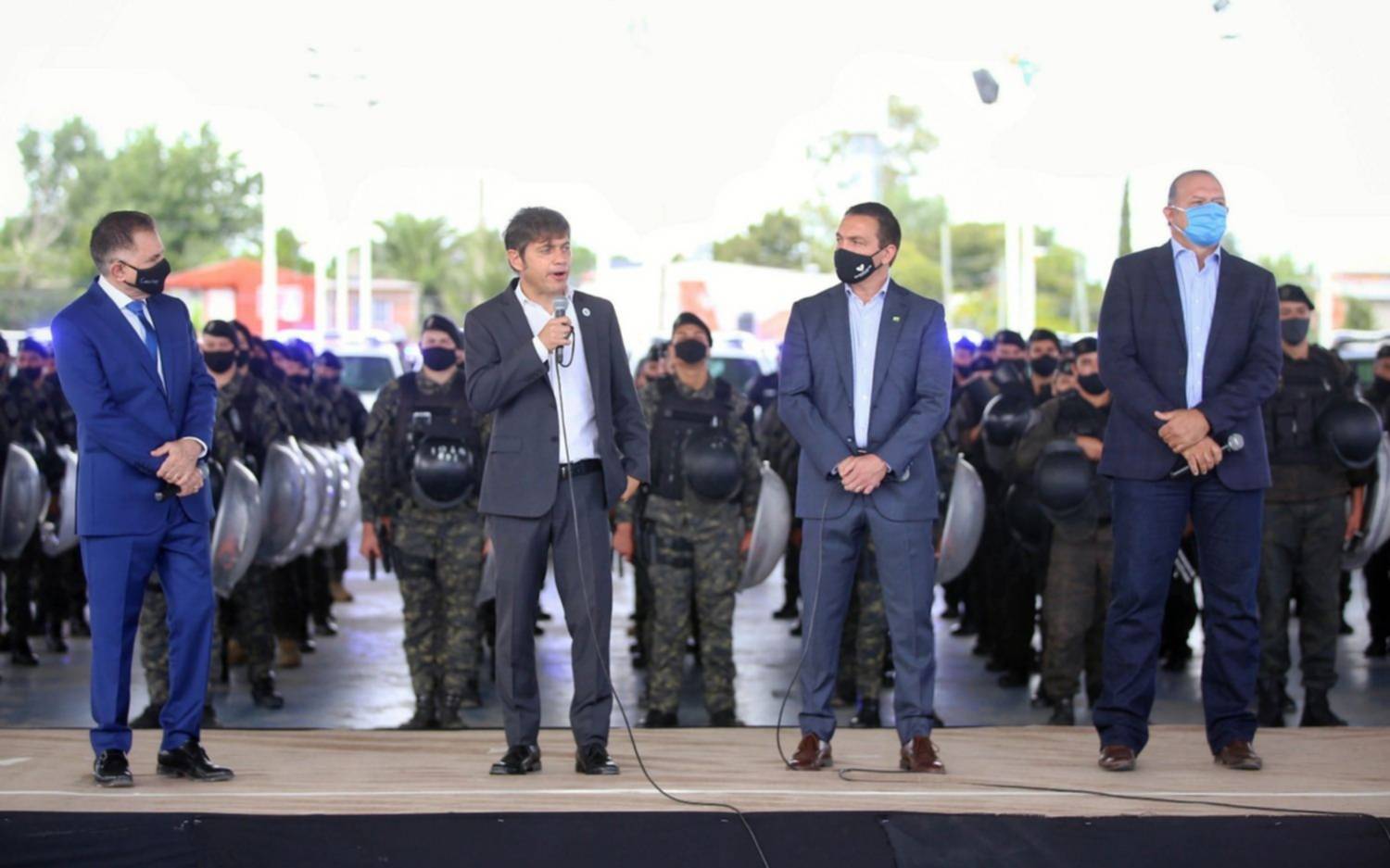 "Estamos invirtiendo en patrulleros, en comunicaciones, tecnología. Estamos reorganizando la Policía, va a llevar tiempo. Equiparamos los salarios empezando con el 50% de la fuerza que menos gana y nos comprometimos con el tiempo a ir equiparando todos los escalafones", indicó Kicillof acompañado del ministro de Seguridad bonaerense, Sergio Berni.