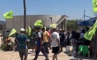 Manifestantes de la UOCRA campan en una obra de ABSA en Ensenada
