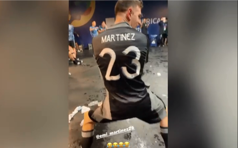 El arquero fue uno de los protagonistas junto a "Papu" Gómez en la celebración en el vestuario. Los dos jugadores quedaron grabados haciendo un baile con "perreo" incluido de "Dibu".
