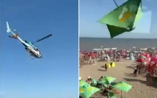 Un insólito episodio se produjo en la tarde del viernes cuando un helicóptero de la Policía bonaerense sobrevoló la playa de Villa Gesell y provocó que varias sombrillas se desprendieran de la arena y volaran por el aire, provocando peligro y temor en los turistas.