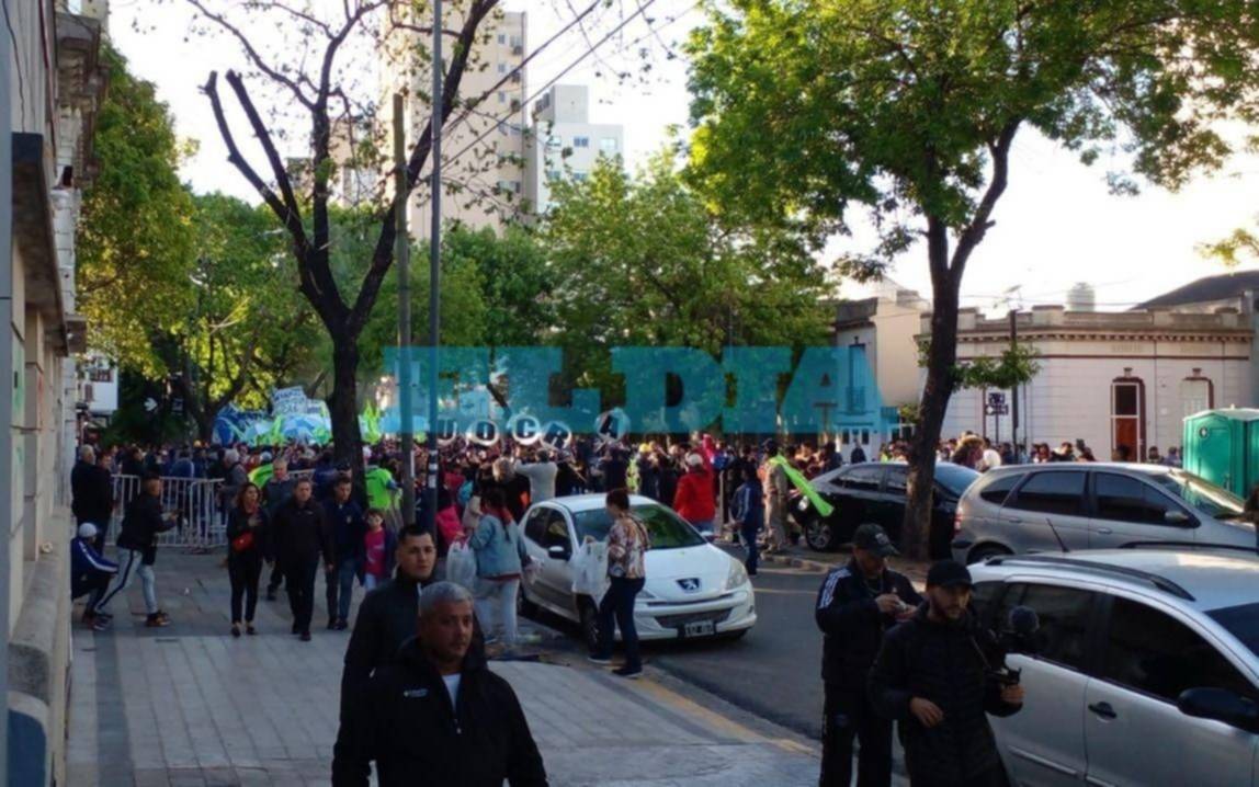 Los militantes se concentraron en las inmediaciones de Plaza Moreno y en las cercanías al estadio de calle 13 entre 59 y 58. El acto tenía previsto comenzar a las 18 hs pero se retrasó algunos minutos.