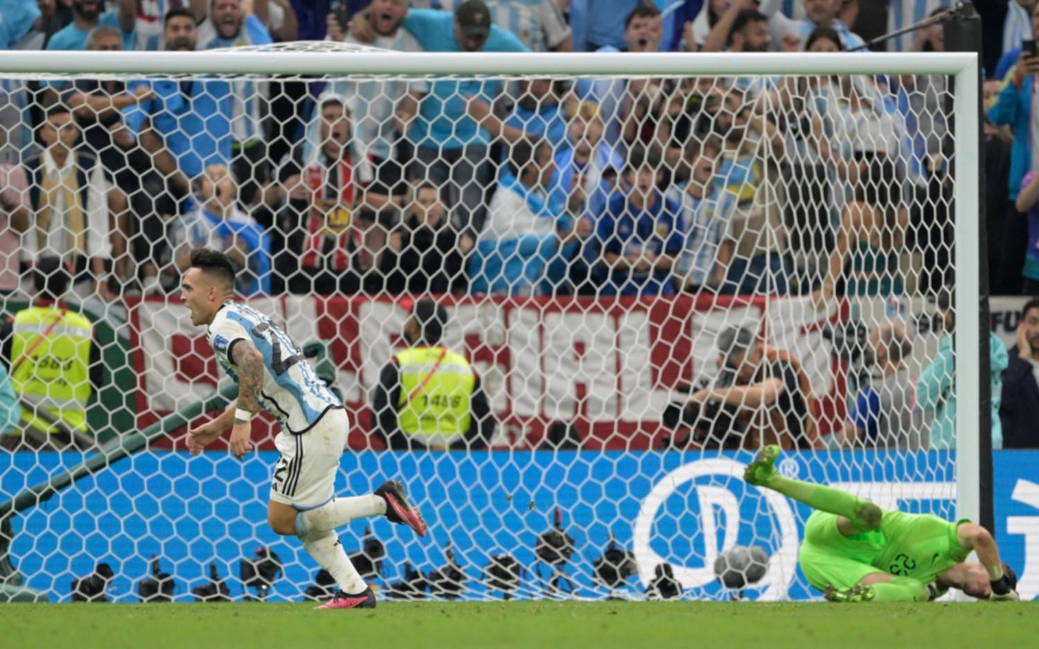 No era una misión fácil para Lautaro Martínez, que perdió la titularidad y no había podido convertir en el Mundial. Pero el ex delantero de Racing fue el designado para el quinto penal que sería definitorio. El Toro fue con gesto serio, de concentración, acomodó la pelota y tras una corta carrera, sacó un derechazo implacable que entró contra el poste derecho, mientras el arquero fue para el otro lado. Fue 4-3 y festejo.