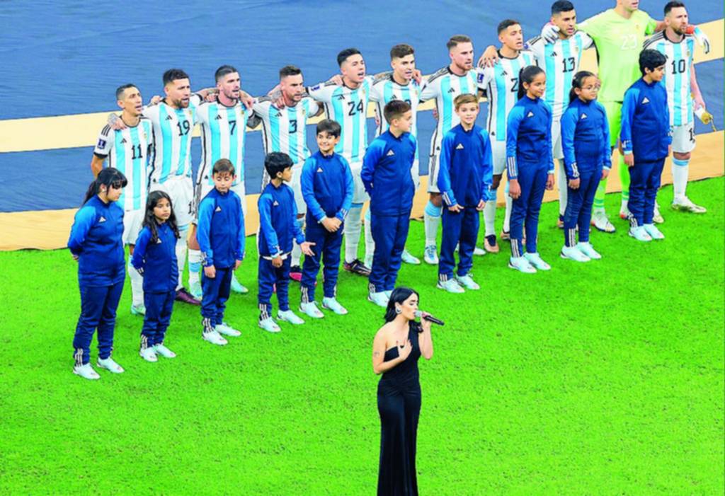 La actriz y cantante Lali Espósito entonó ayer el Himno Nacional en la ceremonia previa a la final de la Copa del Mundo.