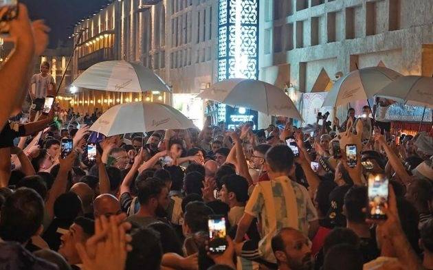“Vamos, vamos, Argentina”, “Muchachos, ahora nos volvimos a ilusionar...”, son los gritos de guerra que la hinchada argentina utiliza en Qatar y que, con el paso de los días, tiñó de celeste y blanco.