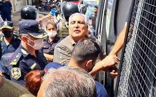 En medio de la arenga de varios familiares y allegados al líder gremial, se subieron a un móvil policial, donde fueron trasladados a la Fiscalía para ser indagados por el Fiscal Marcelo Romero, quien abrió una causa caratulada como "daño, amenazas y lesiones leves".