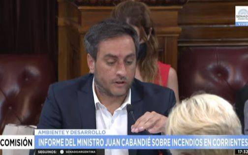 El ministro de Ambiente y Desarrollo Sostenible, Juan Cabandié, expuso este miércoles en el Senado para dar detalles de las acciones realizadas para combatir los devastadores incendios en Corrientes, que ya afectaron al 15% de la provincia.