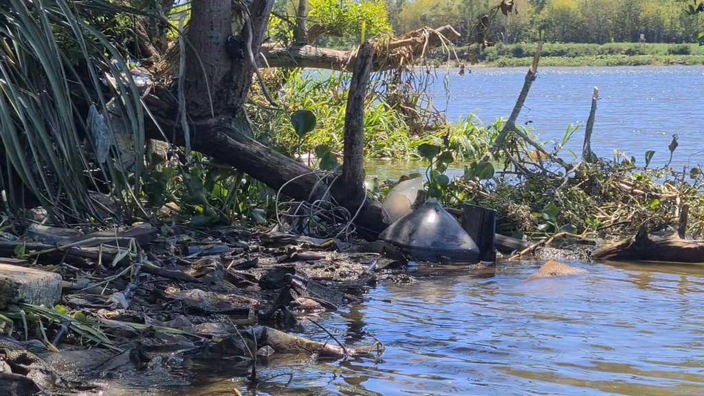 Las crecientes exponen en la desembocadura del Arroyo Del Gato un problema conocido: la contaminación y el vuelco de residuos de todo tipo como parte de ese fenómeno.