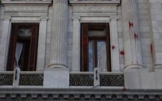Los incidentes estallaron a metros de las esquina de Entre Ríos e Hipólito Yrigoyen y algunas de las piedras hicieron estallar vidrios de los ventanales del edificio del Congreso.