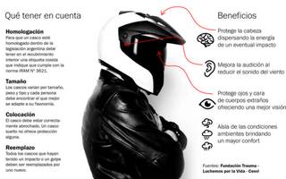 Las lesiones en la cabeza, en tanto, son las que explican el 80% de las muertes a bordo de una moto en la Argentina.