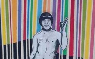 También se desplegaron sobre la avenida dos banderas del Club Atlético Chacarita Juniors, con retratos del artista.