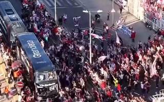los jugadores de river desatan toda la euforia después de ganarle a boca en la bombonera. hubo bailecitos y cánticos frente a la popular /fotobaires