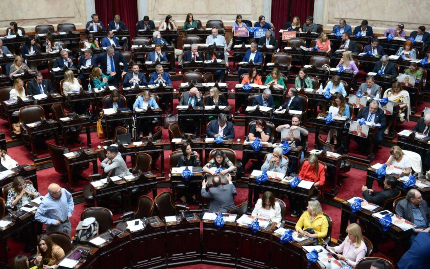 En tanto, la bancada de Juntos por el Cambio (JxC) bajó al recinto una vez que el oficialismo reunió el quórum.