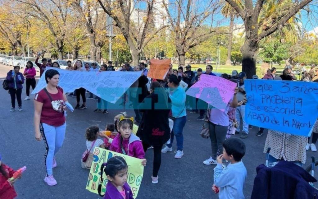 “Hace tres años el problema se esconde debajo de la alfombra”, “queremos los servicios básicos como barrio popular” y “no hay vida sin agua”, eran algunos de los puntos que plantearon los manifestantes frente al palacio provincial de 6 entre 51 y 53.