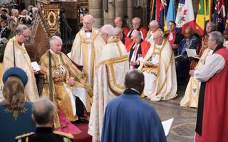 El rey Carlos III ofreció una oración, arrodillado en el altar: “Dios de compasión y misericordia, cuyo Hijo no fue enviado para ser servido sino para servir, dame la gracia de que pueda encontrar en tu servicio la perfecta libertad, y en esa libertad el conocimiento de tu verdad. Haz que pueda ser una bendición para todos tus hijos, de toda fe y creencia, para que juntos podamos descubrir los caminos de la mansedumbre y ser conducidos por los senderos de la paz; través de Jesucristo, nuestro Señor. Amén”.