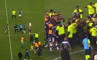 Las patadas y trompadas del final fueron escandalosas. Tal es así, que en medio de la riña, el arquero local José Carvallo, arremetió contra el delantero albiazul Agustín Ramírez, con una patada voladora y un empujón por detrás, algo que alteró aún mas la escena.