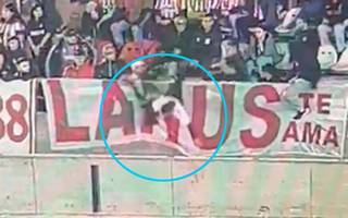 Un hincha, molesto porque otro estaba subido a las barandas de la tribuna, comenzó una discusión y luego le propinó un golpe de puño en el rostro, provocando la caída a la fosa. Tuvo que ser auxiliado por bomberos, poco antes del final del primer tiempo.