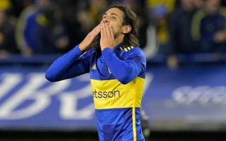 Cavani da rienda suelta al festejo, tras marcar su primer gol en Boca